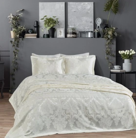 Набір покривало + наволочки 2 шт С "Luxury Jacquard creamy"