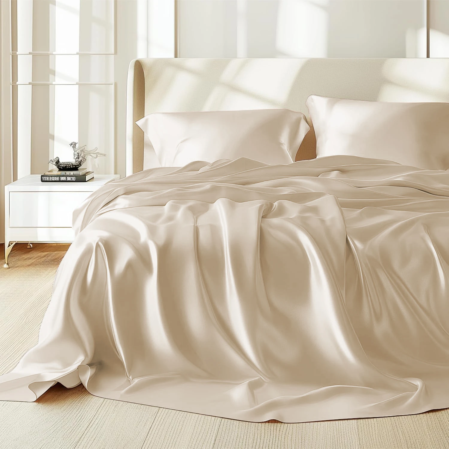 Ця постільна білизна – символ розкоші та комфорту. Шовк Mulberry виготовляється з коконів шовкопряда тут і відрізняється винятковою м'якістю, довговічністю і натуральним блиском. Така білизна має гіпоалергенні властивості, регулює температуру тіла та створює ідеальні умови для сну, забезпечуючи вам не лише комфорт, але й здоров'я. Білизна з шовку Mulberry - це інвестиція в якість сну та ваш затишок.